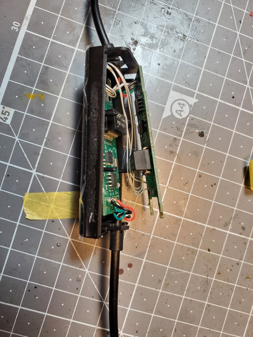 어떻게 잘 겹쳐서 기존 하우징에 유선랜 기판 2장을 쑤셔 넣습니다.