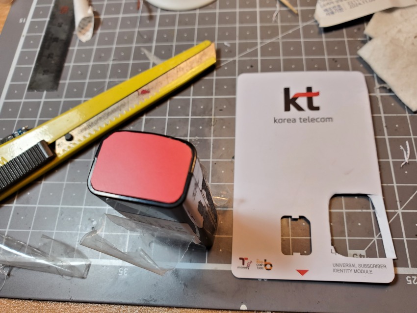내부는 흔들리지 않게 글루건으로 치덕 바르고 랜커넥터가 있던쪽은 프라판 대신 카드 조각을 잘라서 막을 준비를 합니다.