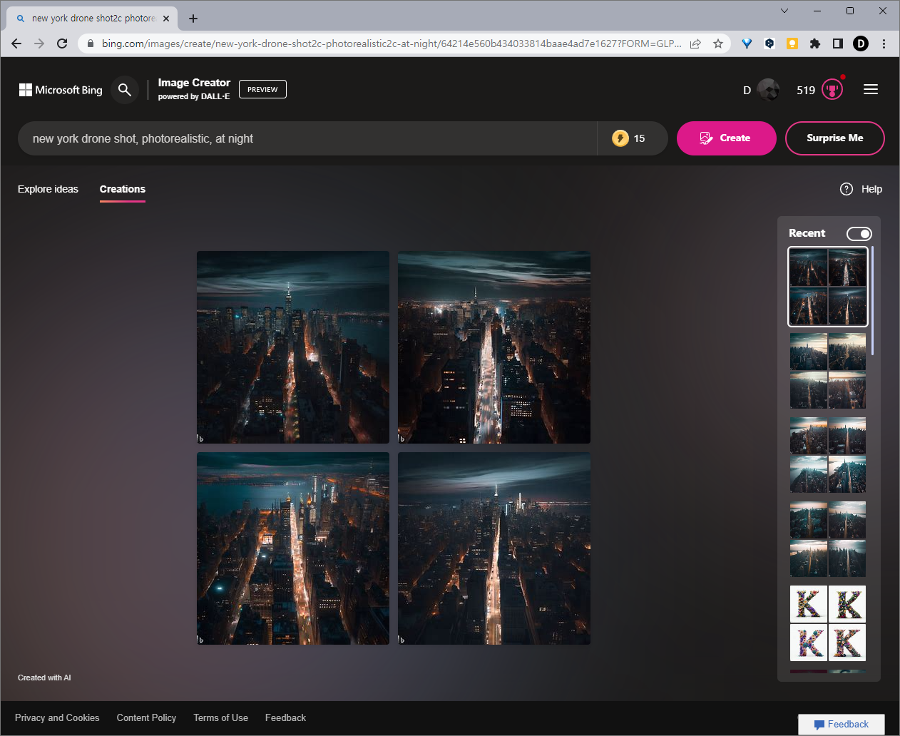 1. Bing Image Creator / 무제한 무료 / DALL-E 모델 사용, 매주 25장은 빠르게, 소진 후 느리게 무제한!