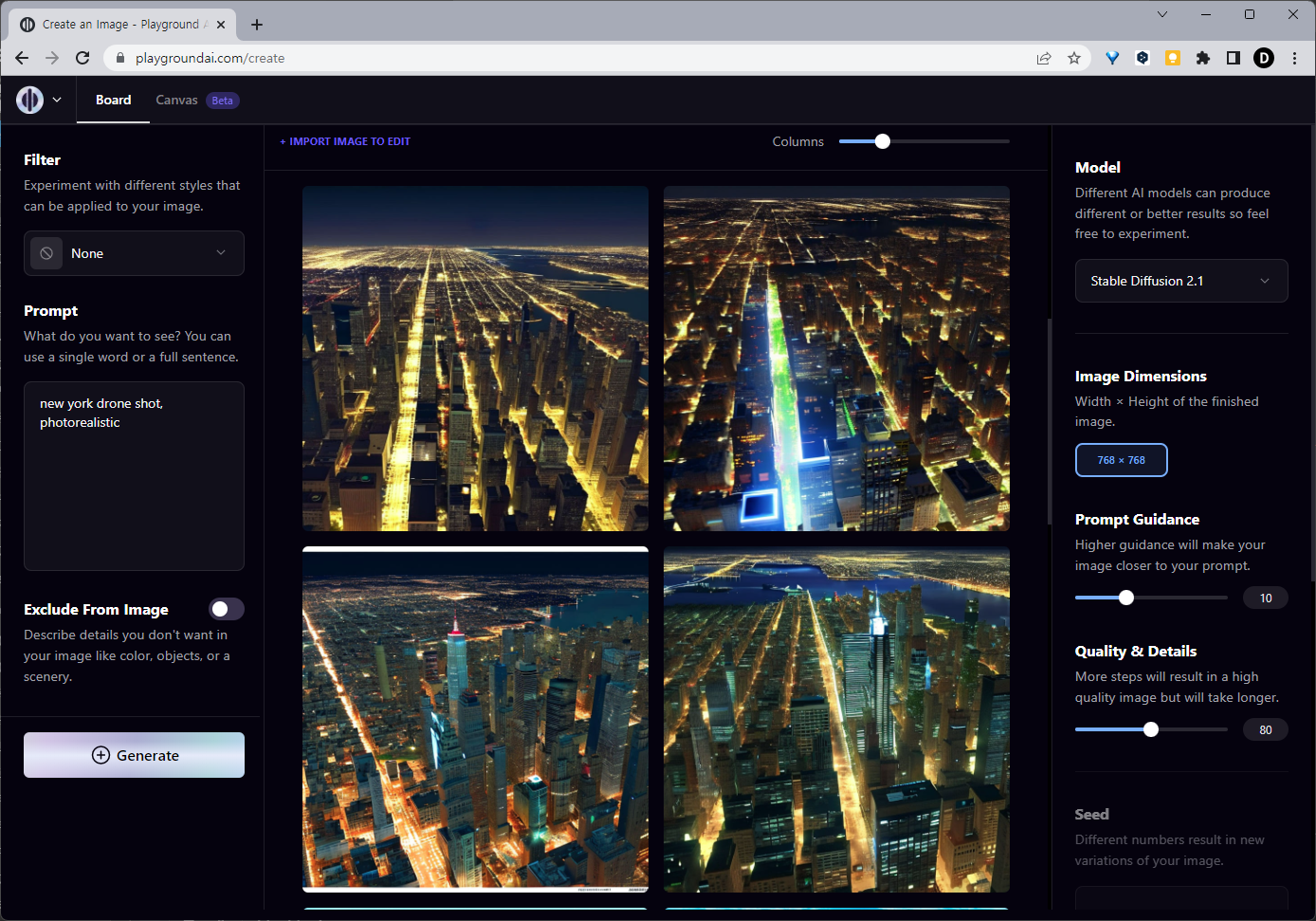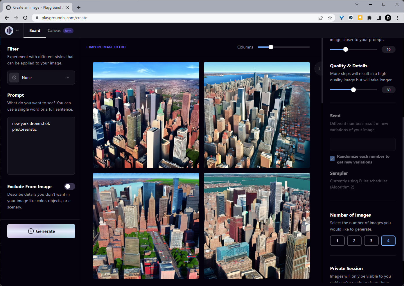 2. Playgroundai.com / 하루 1,000장 무료 / SD 기본 모델 연습용으로 추천!