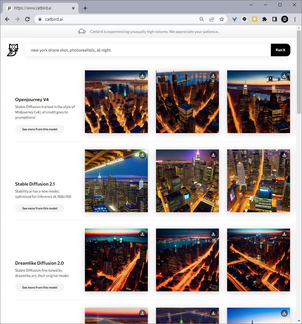 1. 하나의 프롬프트로 각종 SD 모델들 비교하는 https://www.catbird.ai 서비스 이용