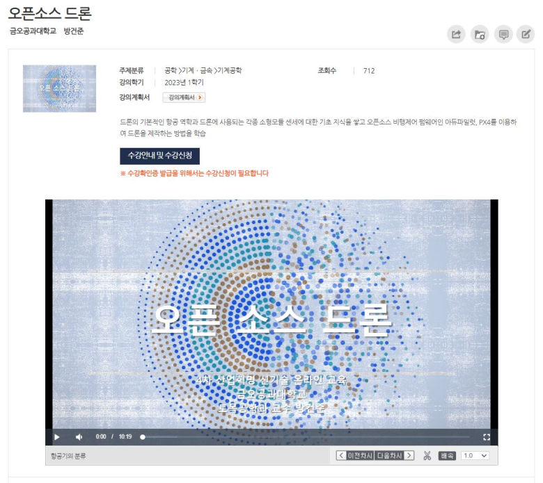 강의 제목은 오픈소스 드론입니다. 금오공대의 방건준 교수님이 진행합니다.