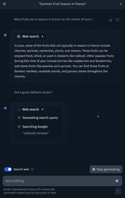 * 레딧 r/ChatGPT : HuggingChat, the 100% open-source alternative to ChatGPT by HuggingFace just added a web search feature.