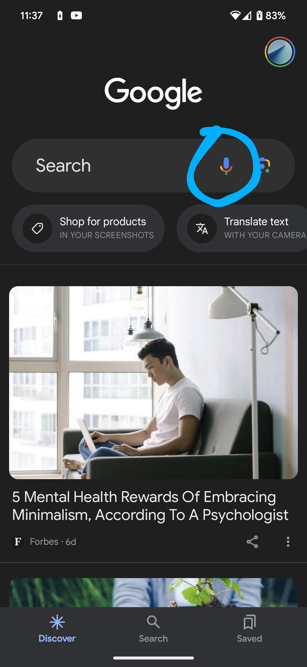 검색 바의 마이크 버튼을 누릅니다.