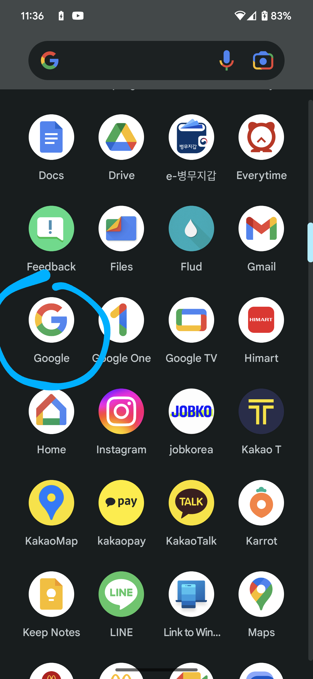 구글 앱을 엽니다.