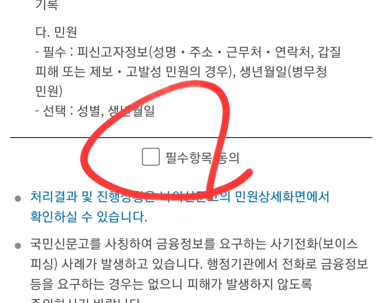 2.필수항목동의를 체크합니다. (미체크시 신고불가)