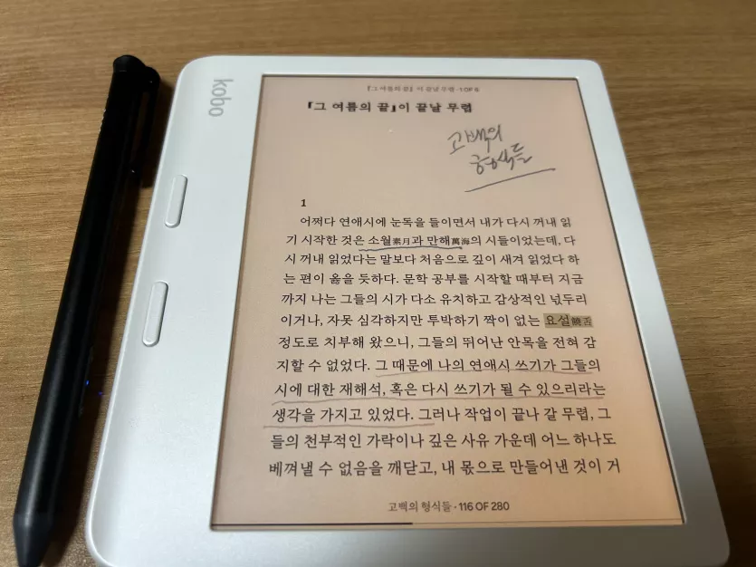 10년 넘게 킨들을 사용 중이고, 킨들만큼 만족을 주는 기기는 없었는데 코보는 그 모든 것을 뛰어넘는 만듦새와 디자인입니다.