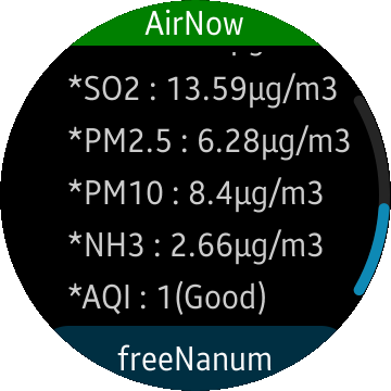 대기,공기질 지수를 알려줍니다. 스샹에 나온 AQI는 1이고 Good 이라고 나오네요.