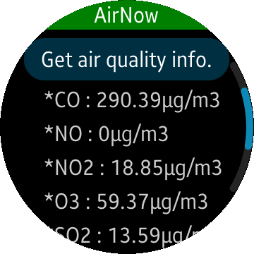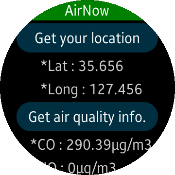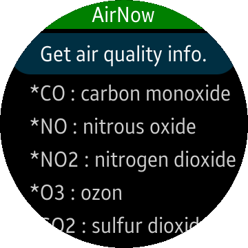 언젠든 갤럭시워치의 AirNow앱으로 현재의 대기질 지수를 확인해보세요.