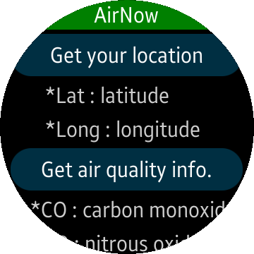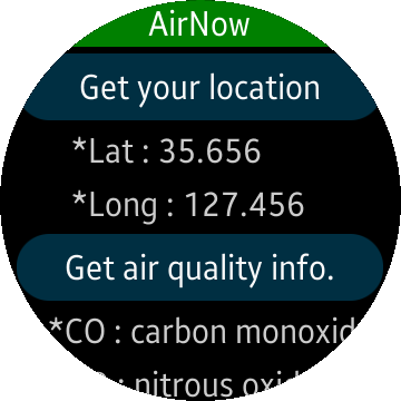 오늘도 갤럭시워치 앱중에서 추천할 앱을 소개합니다. AirNow앱이라고 현재 사는 지역의 현재 시간에 공기,대기질을 알려주는 앱입니다. 간단하게 갤럭시워치에서 확인해 볼 수 있습니다. AQI라고