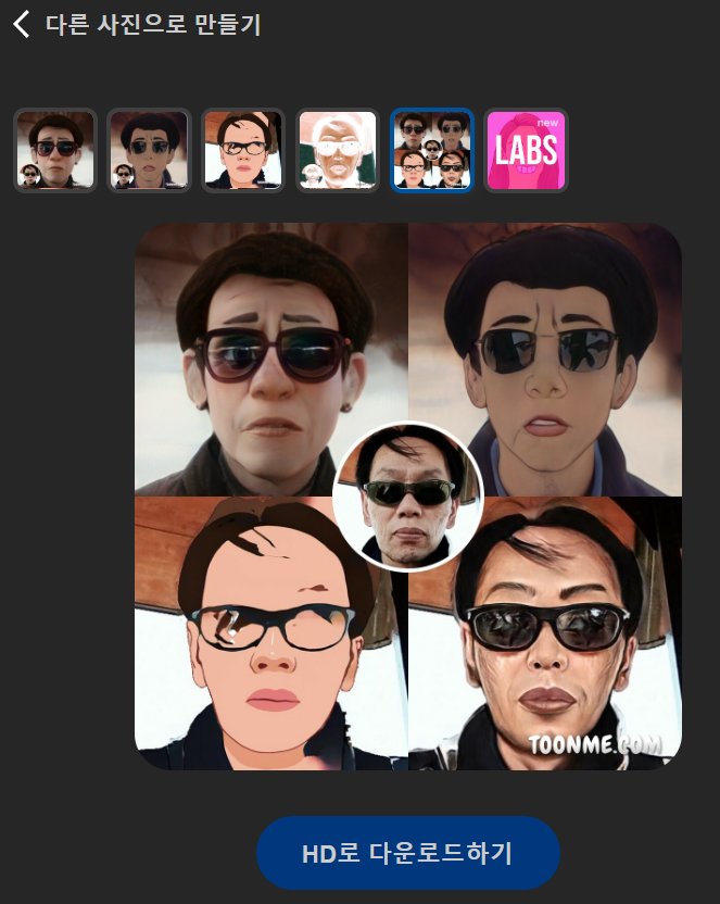 4가지의 스타일로 만화이미지를 만들어 줍니다.