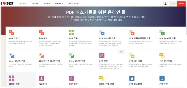 PDF 병합, PDF 나누기, PDF 압축, 오피스 파일에서 PDF로 변환, PDF에서 JPG로 변환, JPG에서 PDF로 변환을 위한 무료 온라인 PDF 도구. 설치 필요 없음