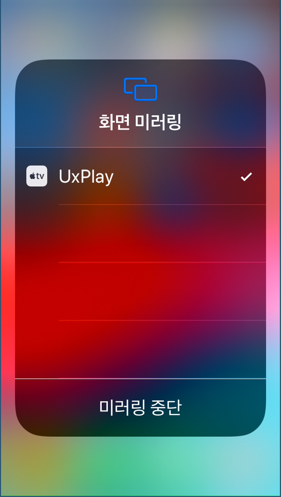 만들고 띄워논 다음, 폰에서 control center -> Screen Mirroring -> UxPlay 터치해서 연결하면 됩니다.