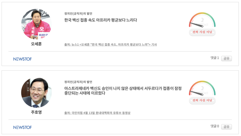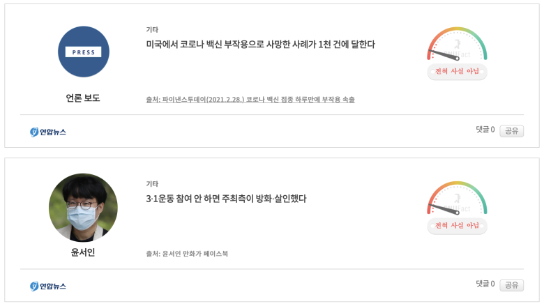 - 정치 사회 이런 건 꽤 충실한데 과학이라던지 전문분야쪽은 팩트체크의 깊이(?)가 얕아서...