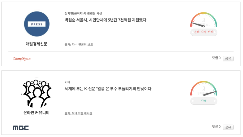 또한, 팩트체크넷도 활용하시면 좋을 것 같습니다.