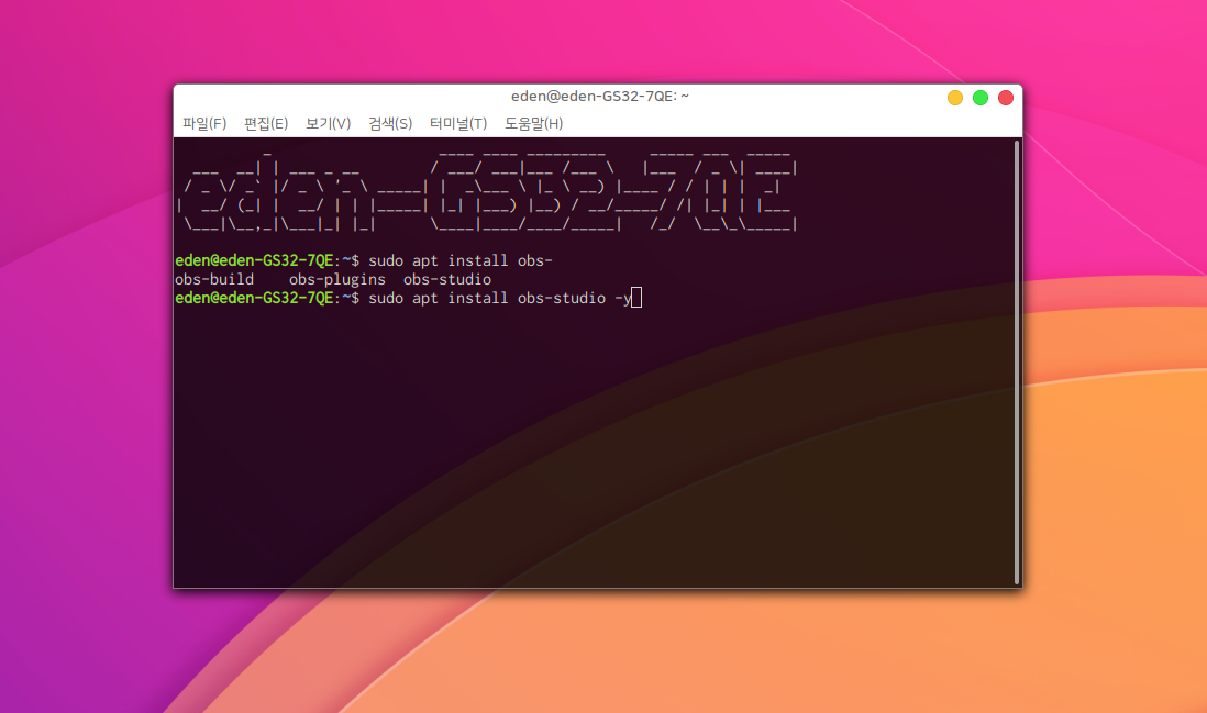 위 이미지의 명령어로 obs-studio를 설치 해준다.