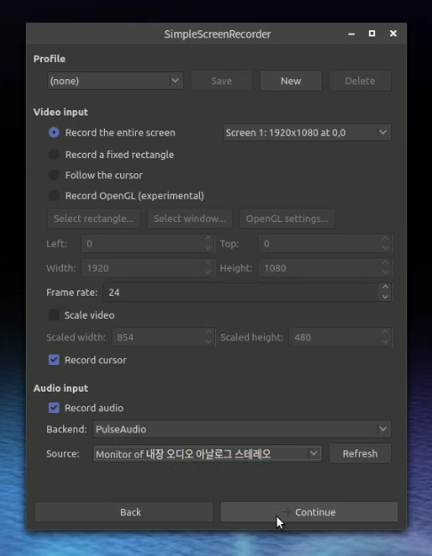 SSR 이라는 Simple Screen Recorder 프로그램을 사용하면 됩니다.