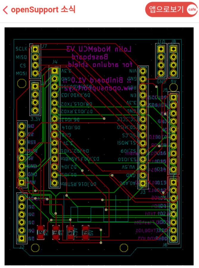 NodeMcu v3 디바이스를 기존에 다양한 아두이노 쉴드를 사용할 수 있도록 확장 캐리어 보드를 제작했습니다.