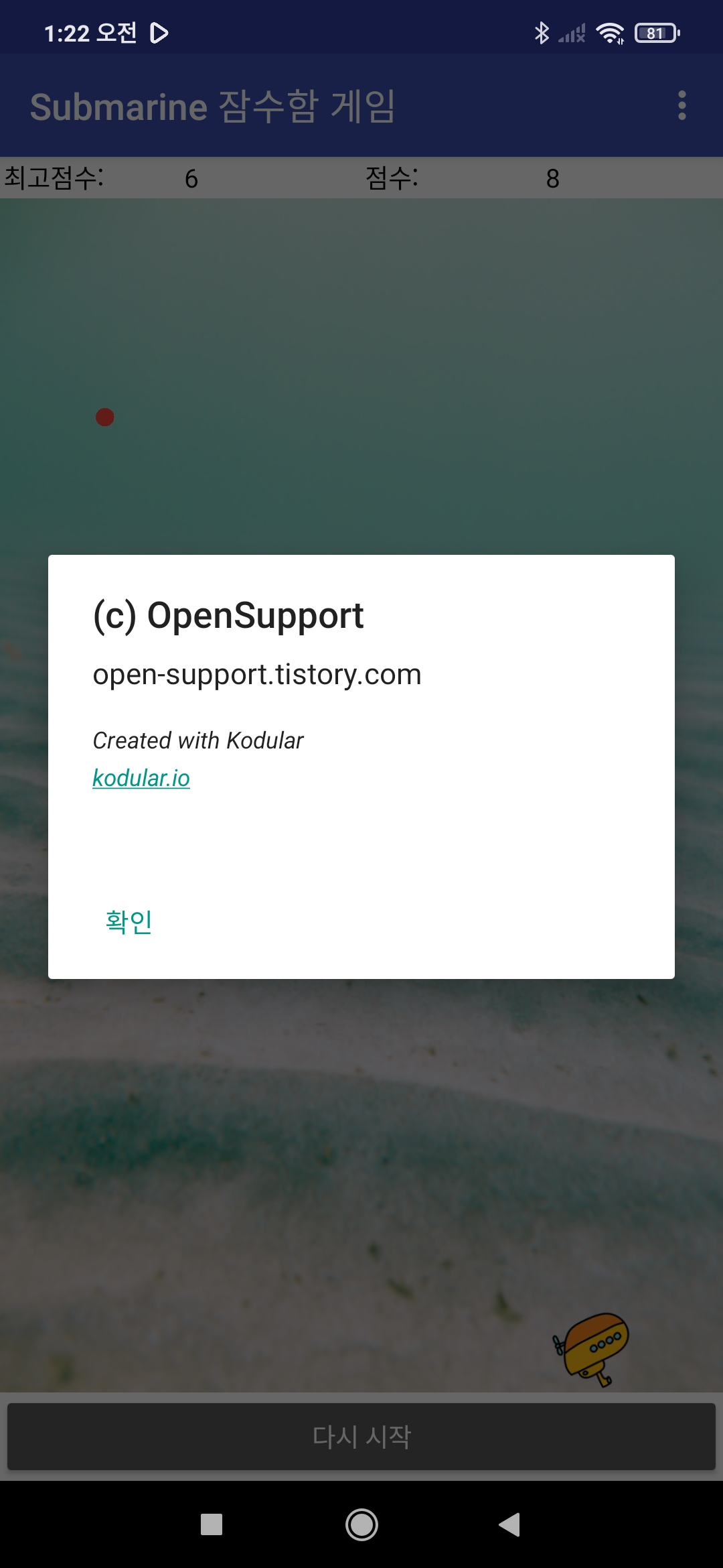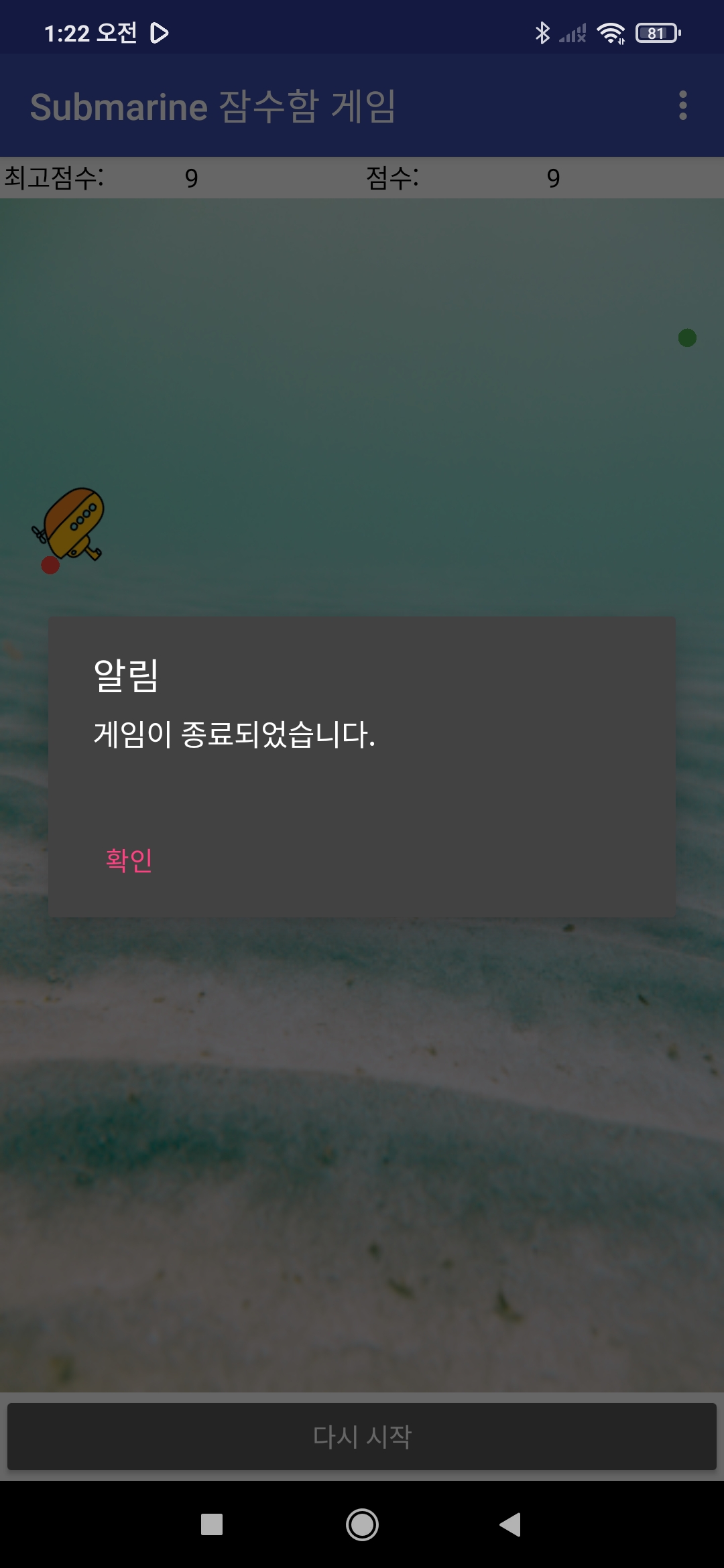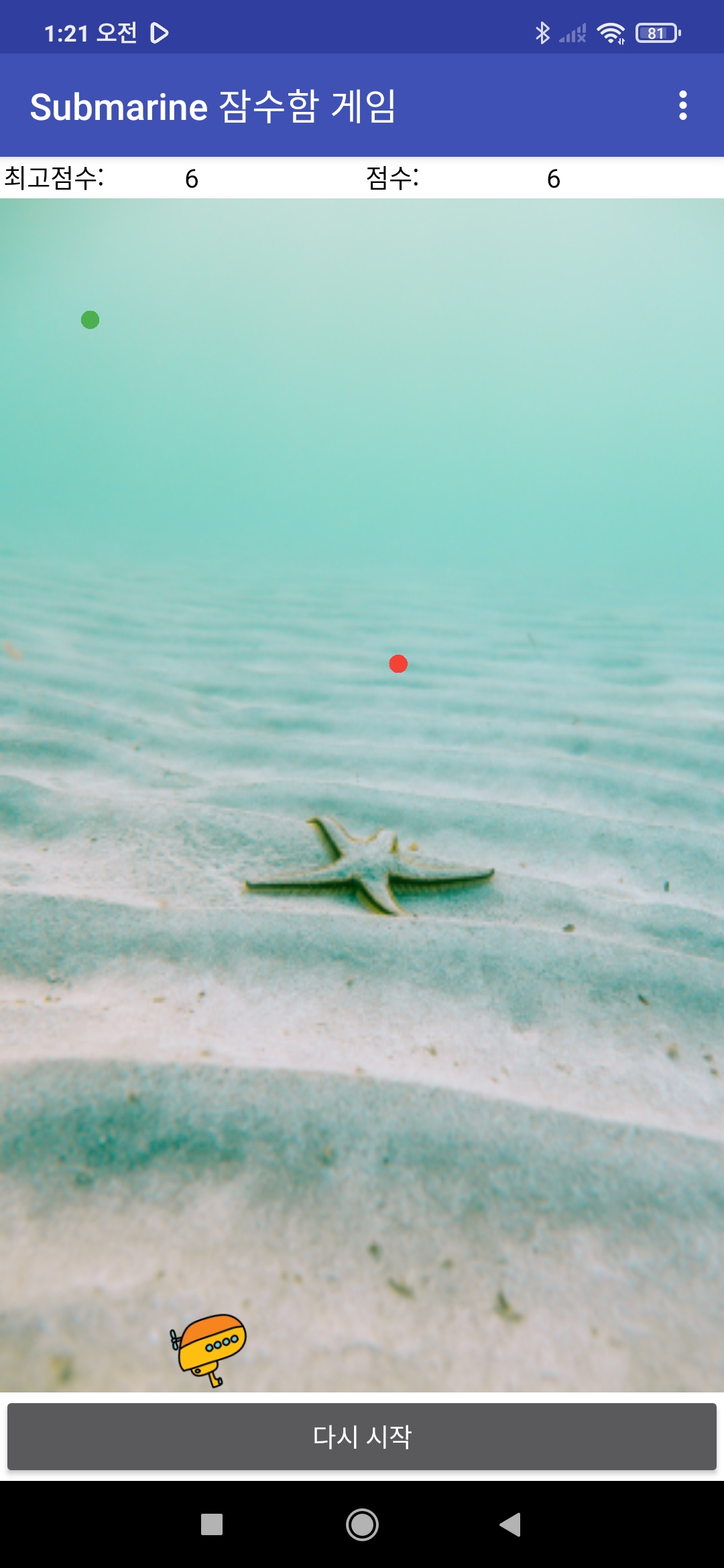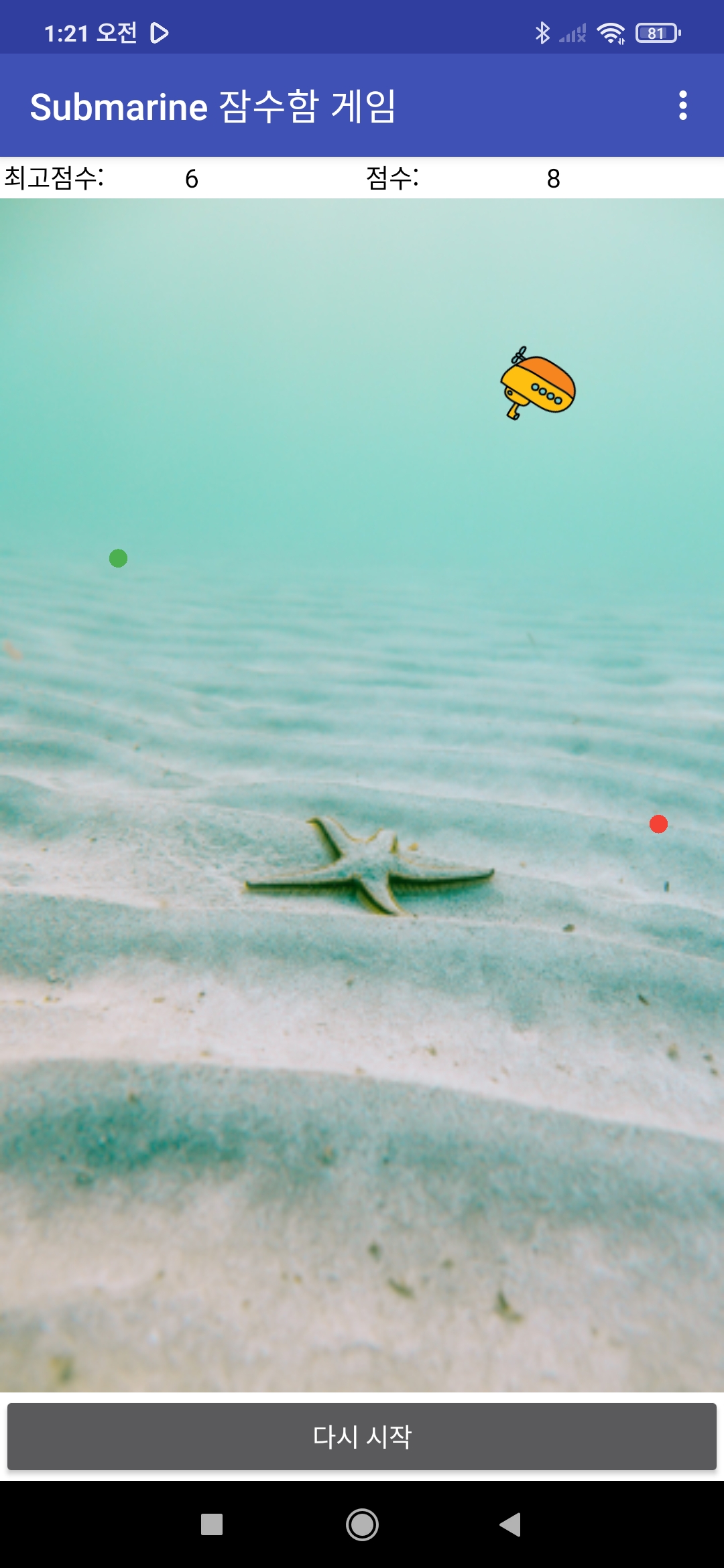 스마트폰의 방향센서를 이용하여 잠수함을 조정하세요.