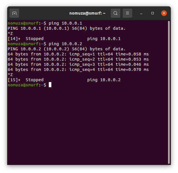 우분투(10.0.0.2)에서는 10.0.0.1로 핑을 쏴도 돌아오질 않습니다