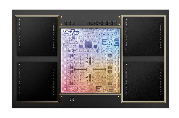 애플이 18일(현지 시각) 공개한 자체 개발 반도체 M1맥스. 전작인 M1에 비해 처리 속도가 70% 빨라졌고, 전력 소모는 경쟁 제품보다 70% 줄었다. 노트북 신제품인 맥북 프로에 탑재된다. /애플