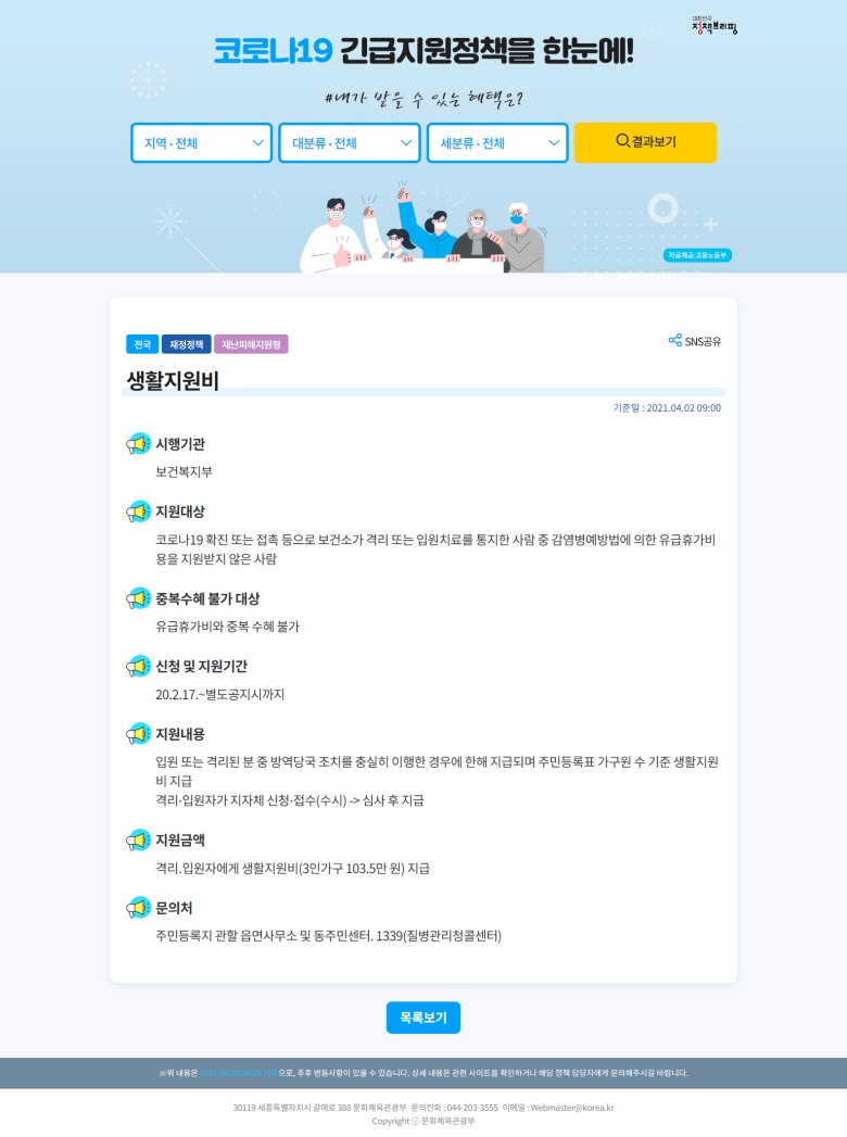 :=> https://www.korea.kr/etc/covid19List.do