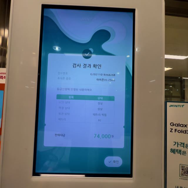 그러다가 민팃에서 폰을 검사할때 지문 같은 것들을 흠짓으로 확인 한다는 얘기를 듣고 오늘 아이폰을 안경수건으로 민팃 기계 넣기 전까지 빤닥빤닥하게 닦은 뒤 다시 검사했더니 25만5천원으로 쳐주더군요.
