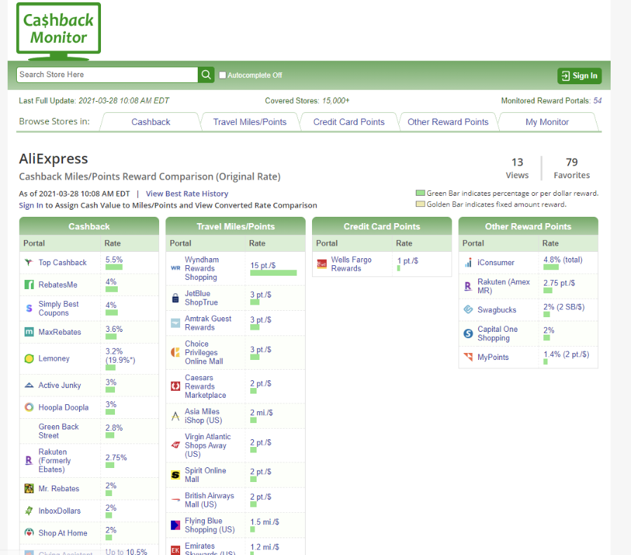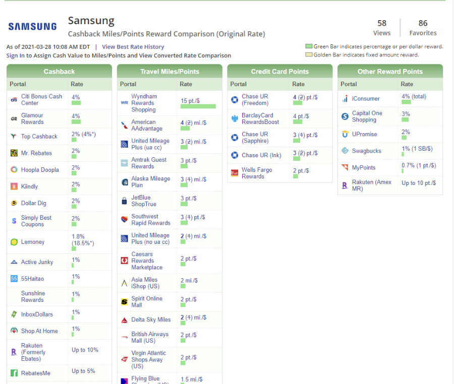 - 항공 마일리지를 제공하는 업체들도 보여주고 있고, 카드사 캐시백 및 기타 리워드 주는 업체들도 보여줍니다.
