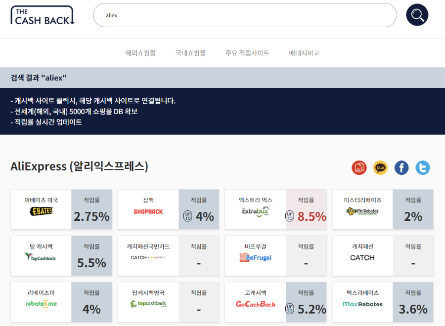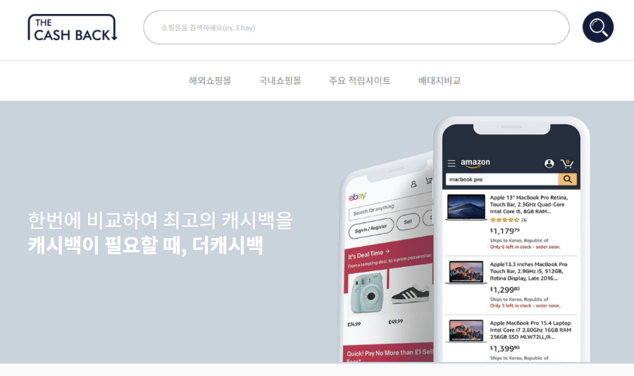 - 해외 직구 캐시백사이트들의 적립률 비교 사이트 - 더캐시백. 모든 적립사이트가 있는 곳, 더캐시백에서 단 한번의 검색으로 더 캐시백받으세요