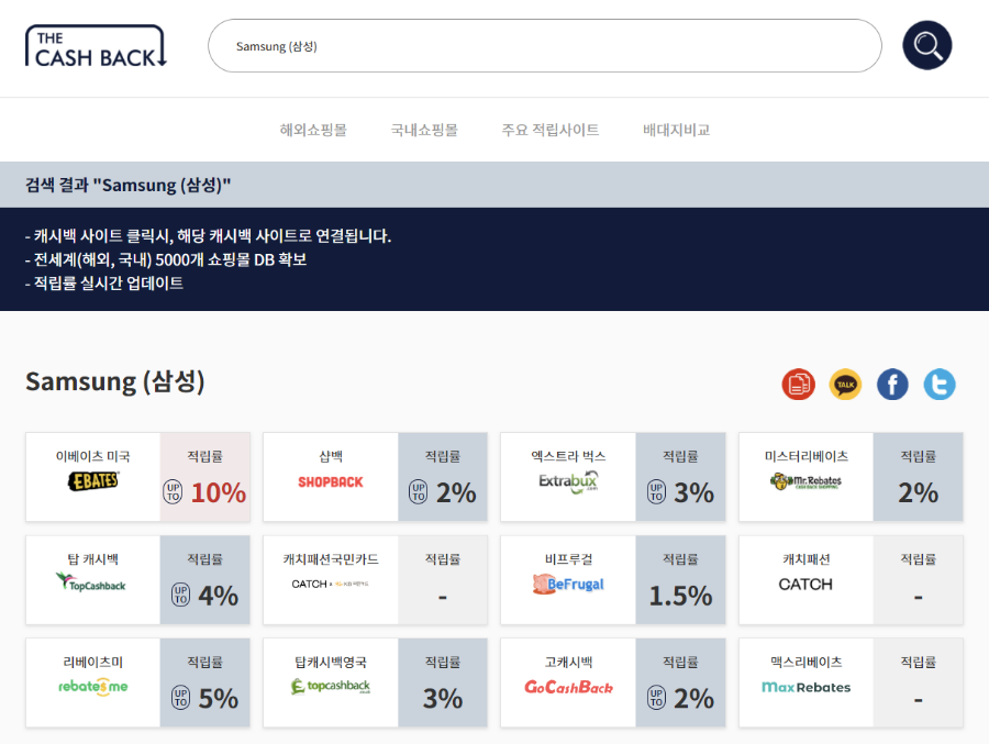 * 더캐시백의 장점 : 모바일 편의성,한국 사람들이 많이 이용하는 캐시백 사이트들 위주.