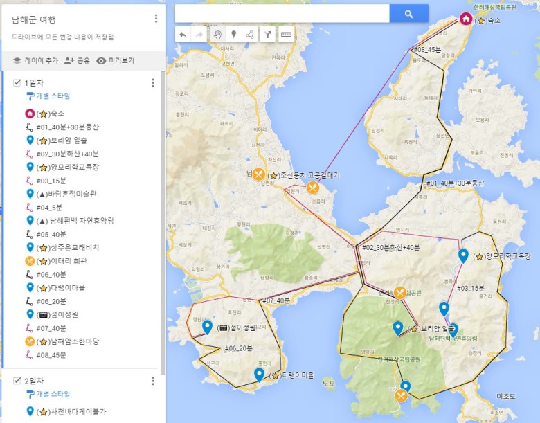 클량에 정보 이것 저것 수집해서 여행 계획을 지도에 그려봤는데요,