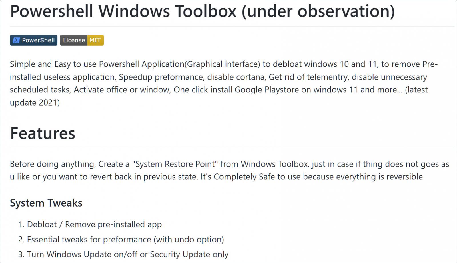 그 무렵 누군가가 Android 하위 시스템용 Google Play 스토어를 설치하는 기능을 포함하여 다양한 기능이 포함된 Windows Toolbox 라는 새로운 도구 를 GitHub에 출시했습니다.