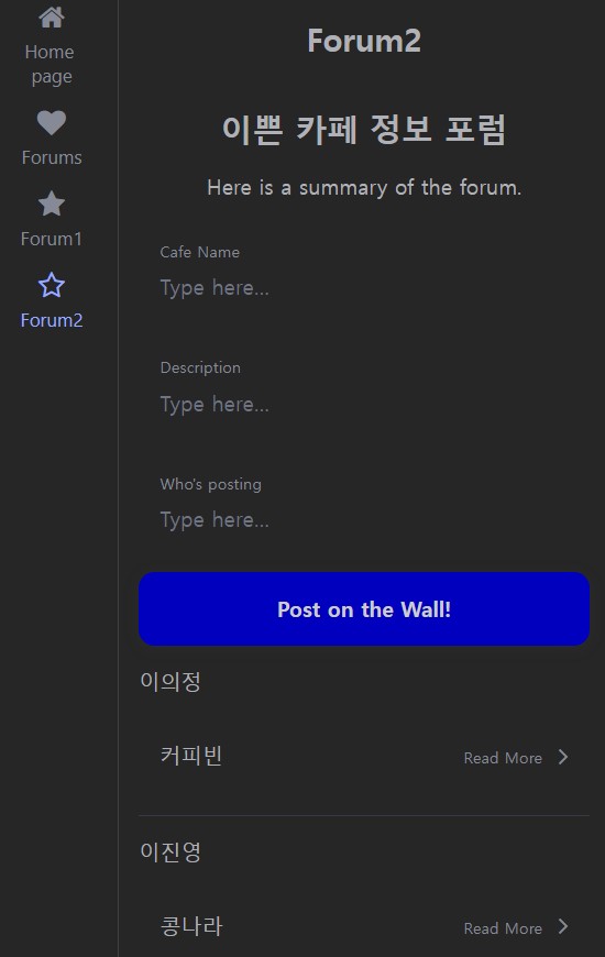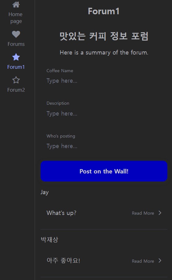 커피, 카페 관련 SNS를 간단히 만들어 보았습니다.