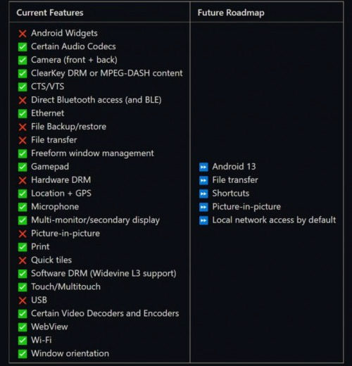 * 공식 로드맵 페이지 : https://github.com/microsoft/WSA#roadmap