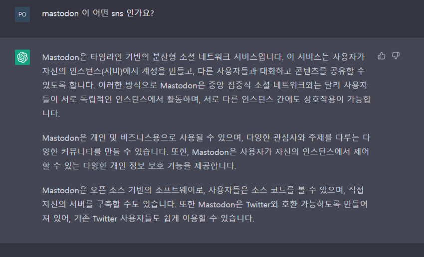 chatgpt에서 물어 봤습니다. 마스토돈 에 대해서요.